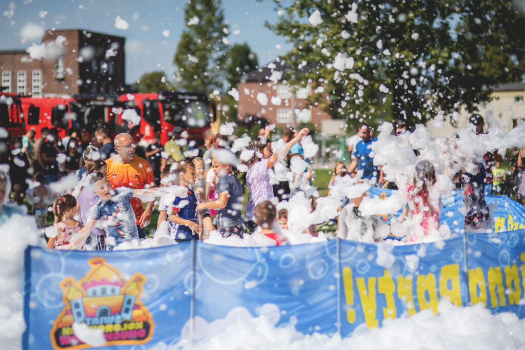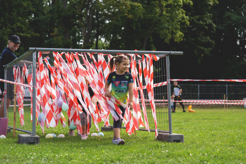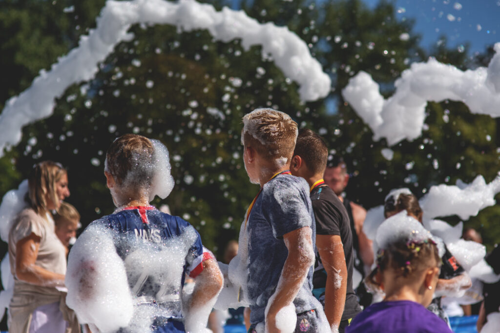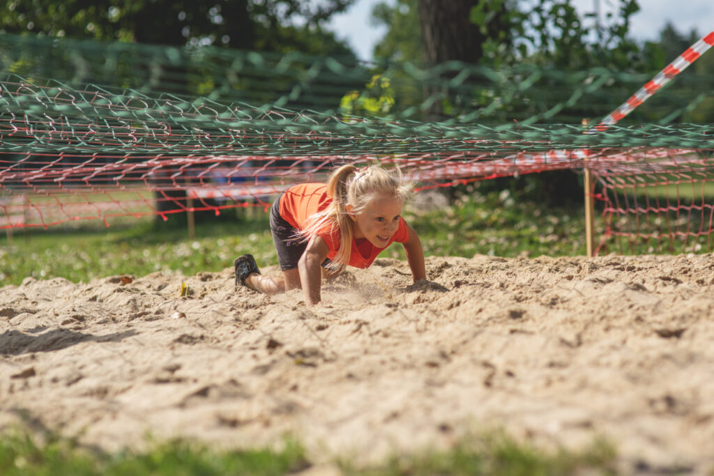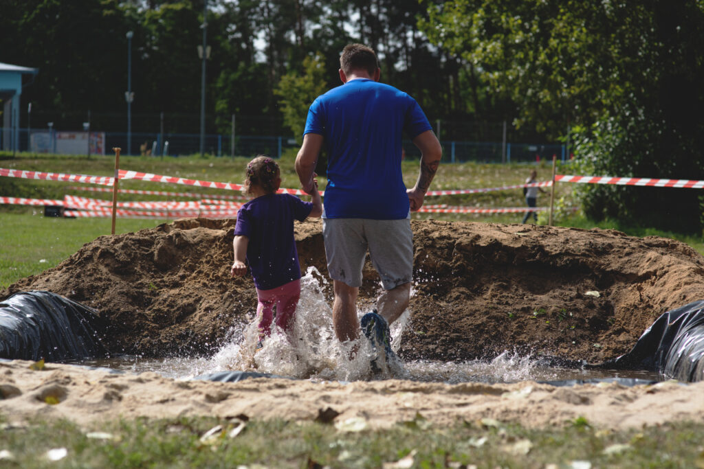 Na specjalnym torze z różnorodnymi przeszkodami ścigali się uczestnicy w trzech kategoriach wiekowych: 4-5 lat (bieg z rodzicem), 6-7 lat i 8-11 lat . Dzieci miały za zadanie wspinać się, czołgać, przeskakiwać przeszkody, ciągnąć ciężkie worki, a to wszystko w biegu. Najmłodszym pomagali niezastąpieni rodzice i opiekunowie. Również obsługa toru służyła pomocą. Dla dzieci była to świetna okazja na rozładowanie energii oraz szansa, żeby się wyszaleć i bez konsekwencji wybrudzić w błocie!