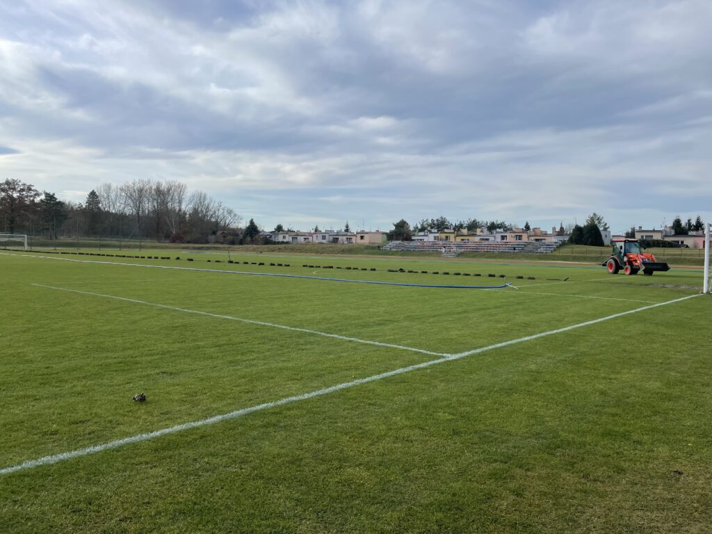 Ruszyły prace związane z montażem systemu nawadniania murawy boiska piłkarskiego na Stadionie Miejskim. W ramach zadania na głównej płycie boiska piłkarskiego instalowany jest nowoczesny system nawadniania, w technologii opartej na montażu podziemnych zraszaczy. Praca zraszaczy będzie zaprogramowana zgodnie z panującymi warunkami atmosferycznymi. System będzie miał wmontowany czujnik opadów, który będzie wykluczał podlewanie podczas opadów atmosferycznych.
