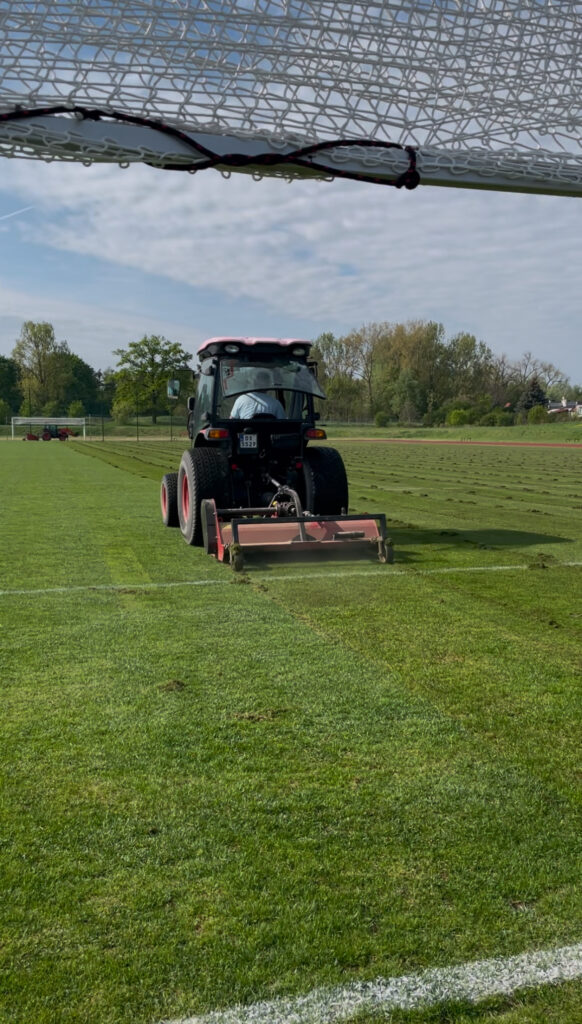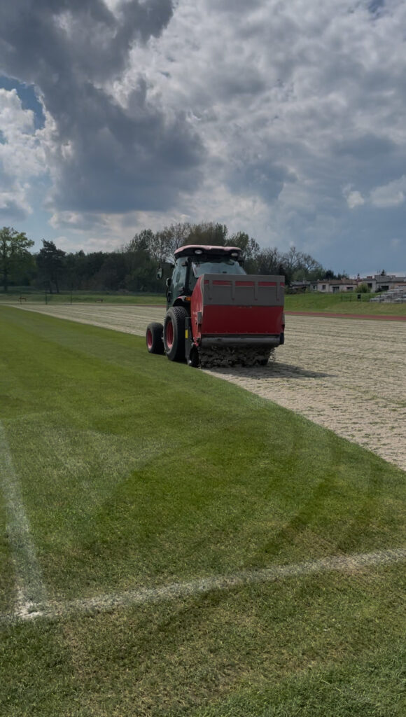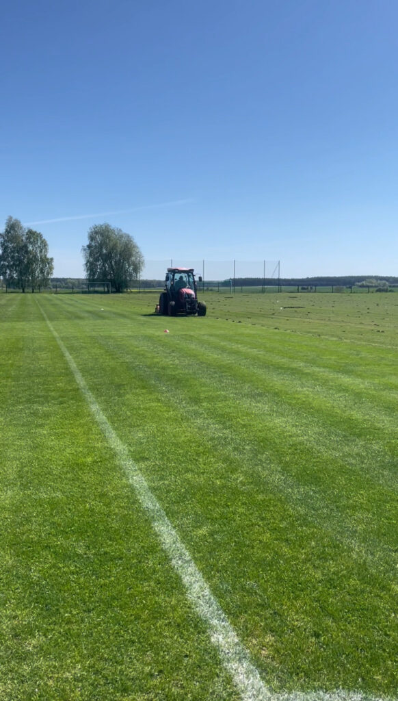 zdjęcie zabiegów pielęgnacyjnych boiska piłkarskiego