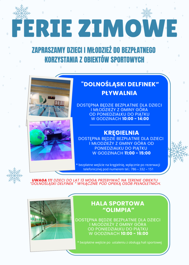 Dzieci i młodzież z Gminy Góra zapraszamy podczas ferii zimowych do bezpłatnego korzystania z obiektów sportowych OKF.